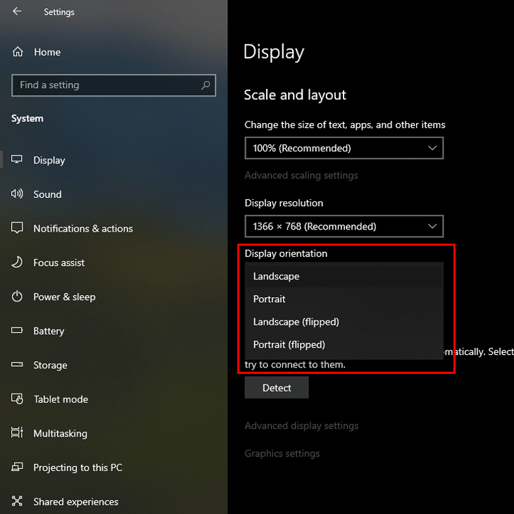 Chọn kiểu xoay màn hình mà bạn muốn trong mục Display orientation