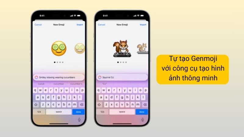 Thay vì sử dụng những emoji thông thường, bạn có thể tạo Genmoji của riêng mình dựa trên mô tả. Đây chính là công cụ tuyệt vời giúp bạn thể hiện chính xác cảm xúc cá nhân theo cách độc đáo nhất. Bạn chỉ cần nhập mô tả và Genmoji sẽ tự động được xử lý và tạo với các tùy chọn chỉnh sửa và bạn có thể hoàn thiện emoji theo ý muốn.