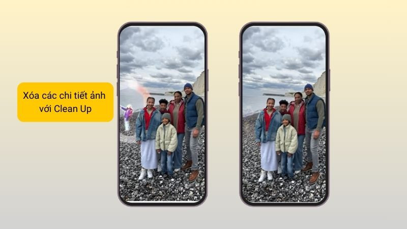 Hoặc tính năng này còn giúp bạn chỉnh sửa ảnh nhanh chóng với công cụ Clean Up. Bạn chỉ cần khoanh vùng vào các chi tiết ảnh bạn muốn xóa là sẽ có bức ảnh như mong muốn.