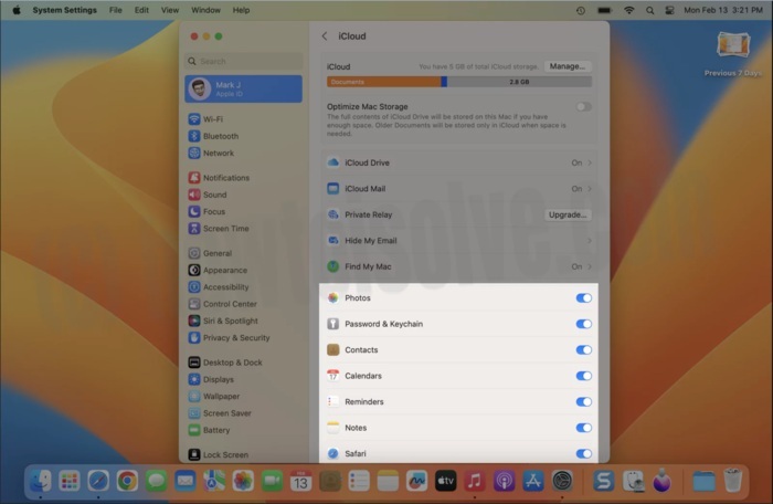 - Với macOS Ventura 13 đến 13.2: Bạn nhấn Menu Apple -> Cài đặt hệ thống -> Bấm vào tên Apple ID ở đầu thanh bên -> Nhấn iCloud ở bên phải -> Nhấn Mail iCloud, sau đó bấm vào On (Bật).