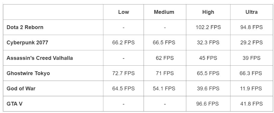 RX 6550M hỗ trợ chơi các tựa game phổ biến hiện nay ở độ phân giải Full HD với thiết lập đồ họa từ trung bình đến cao. Dưới đây là một số đánh giá về hiệu năng chơi game của RX 6550M: